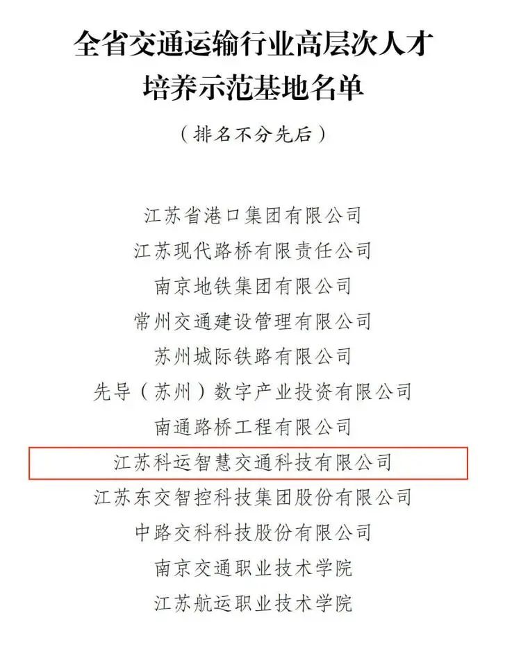 蘇交科 · 江蘇科運(yùn)智慧榮獲“全省交通運(yùn)輸行業(yè)高層次人才培養(yǎng)示范基地”稱號
