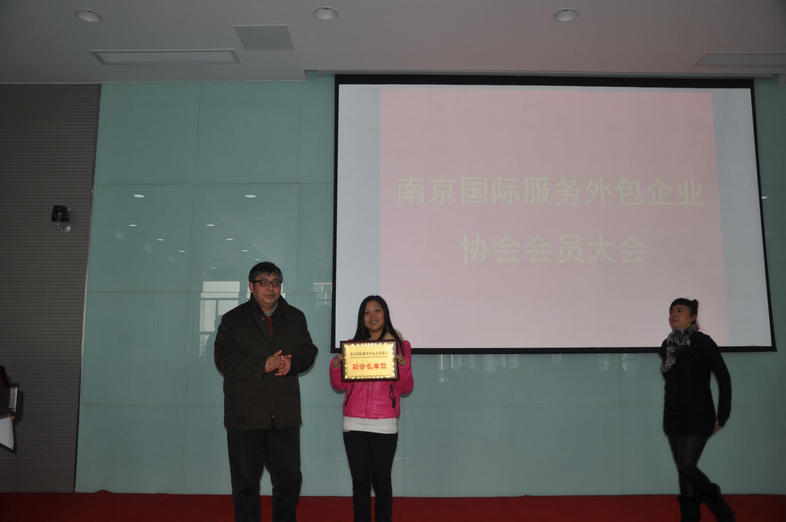 上半場,南京國際服務外包企業(yè)協(xié)會秘書長陸薇拉女士,向各會員單位匯報了協(xié)會2014年度的主要工作,并得到了各會員單位對協(xié)會工作的肯定。匯報結(jié)束后,由南京嘉環(huán)科技有限公司、江蘇萬和計算機培訓中心、南京愛德印刷有限公司、江蘇謀士在仁人才管理咨詢股份有限公司等5家企業(yè)參加了“‘百企巡展’系列活動三”的推介活動。推介結(jié)束后,南京市優(yōu)壹職業(yè)培訓學校、南京錦創(chuàng)科技股份有限公司、南京軟通動力信息技術(shù)服務有限公司、南京貝龍通信科技有限公司、江蘇謀士在仁人才管理咨詢股份有限公司、南京瑞科翻譯有限公司、南京皓都信息科技有限公司等7家企業(yè)參加了授牌儀式。