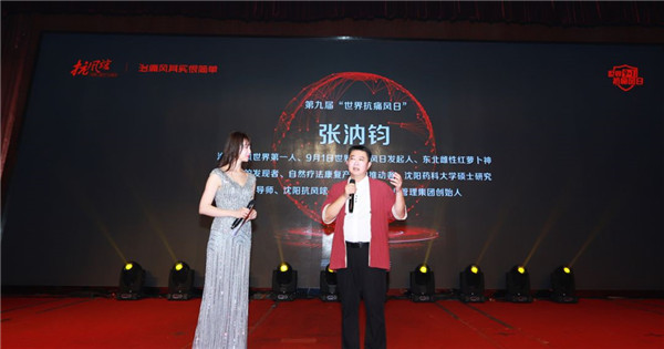 會上,主持人采訪了治愈痛風(fēng)世界第一人、沈陽藥科大學(xué)研究生導(dǎo)師、東北雌性紅蘿卜神奇療效的發(fā)現(xiàn)者、沈陽抗風(fēng)竤(綠色)醫(yī)療產(chǎn)業(yè)管理集團創(chuàng)始人張汭鈞董事長。