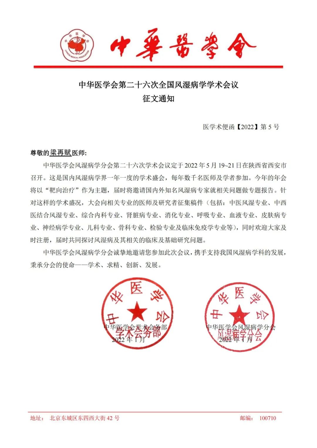 沈陽抗風(fēng)竤(綠色)醫(yī)療產(chǎn)業(yè)管理集團(tuán)下屬沈陽抗風(fēng)竤痛風(fēng)研究院科研團(tuán)隊(duì)收到中華醫(yī)學(xué)會(huì)“第二十六次全國風(fēng)濕病學(xué)學(xué)術(shù)會(huì)議”會(huì)務(wù)組邀請(qǐng),將于2022年5月19至21日赴陜西省西安市參加本次國內(nèi)風(fēng)濕病學(xué)界的學(xué)術(shù)盛會(huì)。