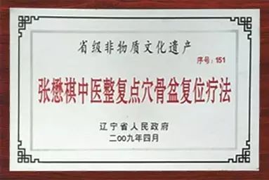 遼寧省非物質(zhì)文化遺產(chǎn)《張懋祺中醫(yī)整復點穴骨盆復位療法》傳承人——整復點穴大師,現(xiàn)已加入沈陽抗風竤中醫(yī)門診專家團隊,任中醫(yī)骨盆復位專家。